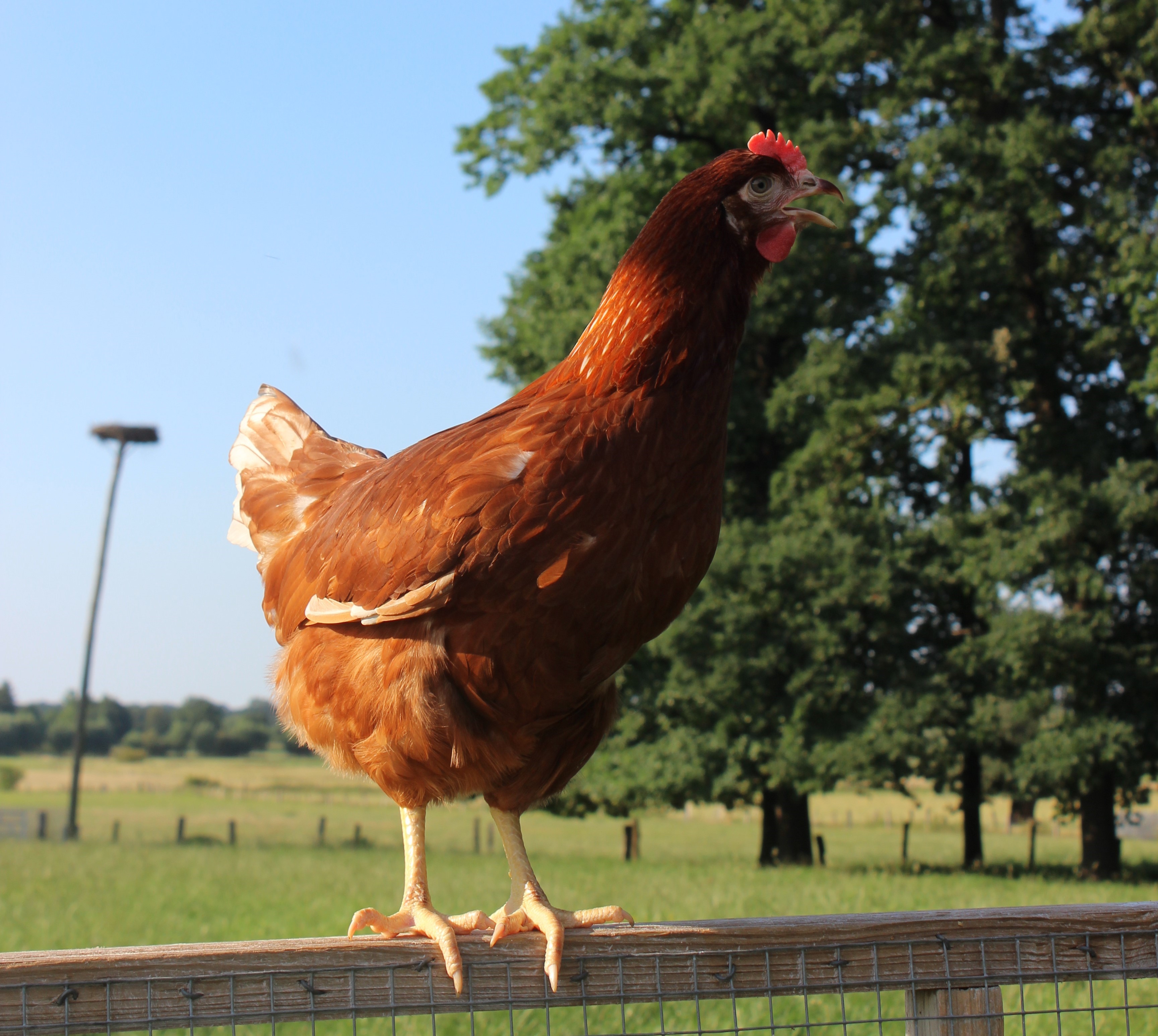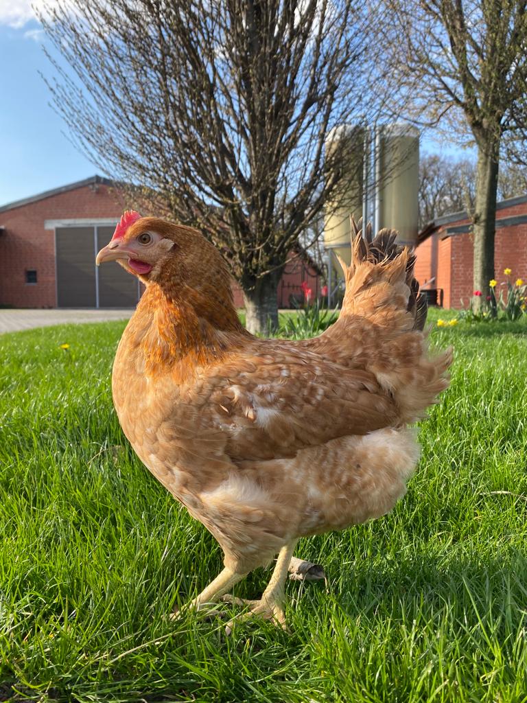 Die braune Lohmann Henne ist eine produktive Legehennenrasse, die nicht nur durch ihre natürliche Schönheit, sondern auch durch ihre hohe Legeleistung bei stetiger Robustheit beeindruckt. Mit einem Federkleid in warmen Brauntönen und einem roten Kamm strahlt diese Hühnerrasse eine natürliche Eleganz aus.